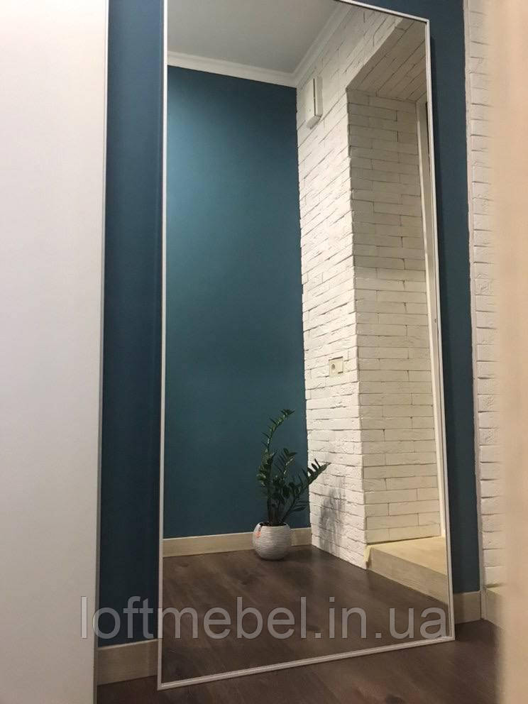 Дзеркало велике настінне в металевій рамі Біле в повний зріст підлогове 1800х800 мм